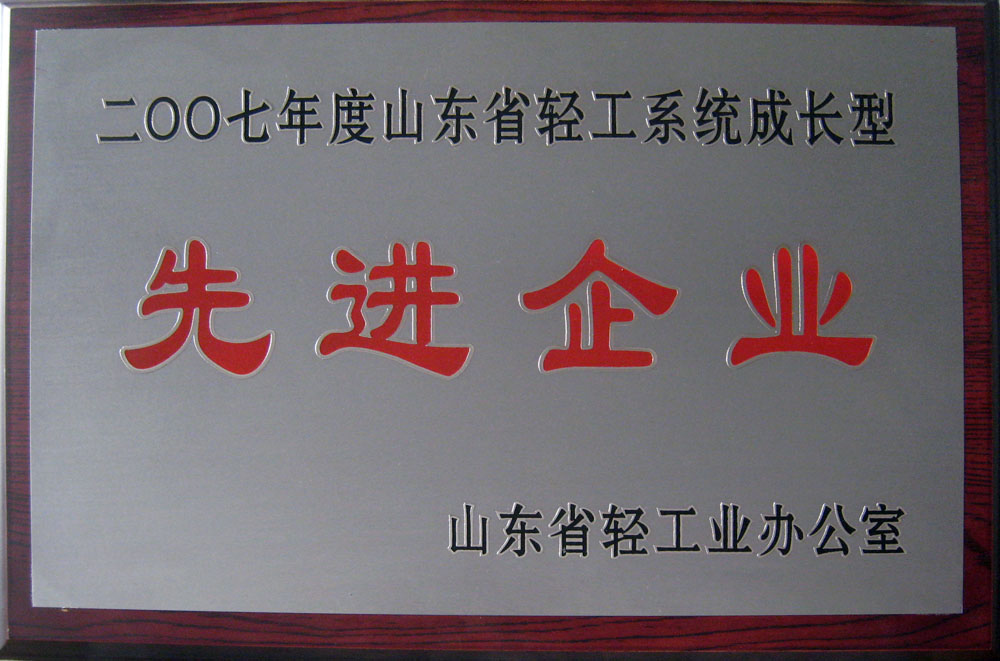 2007年度山東輕工系統(tǒng)成長型先進企業(yè)