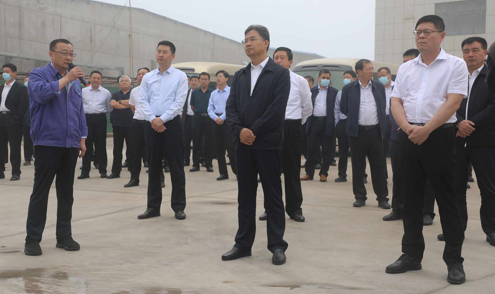 我縣組織開展2021年下半年全縣經濟社會發展現場觀摩點評活動,縣委書記王義樸,縣委副書記、縣長張濤等縣大班子領導到我公司硼硅玻璃分公司一車間進行觀摩點評,公司董事長扈永剛,總經理張軍全程陪同。