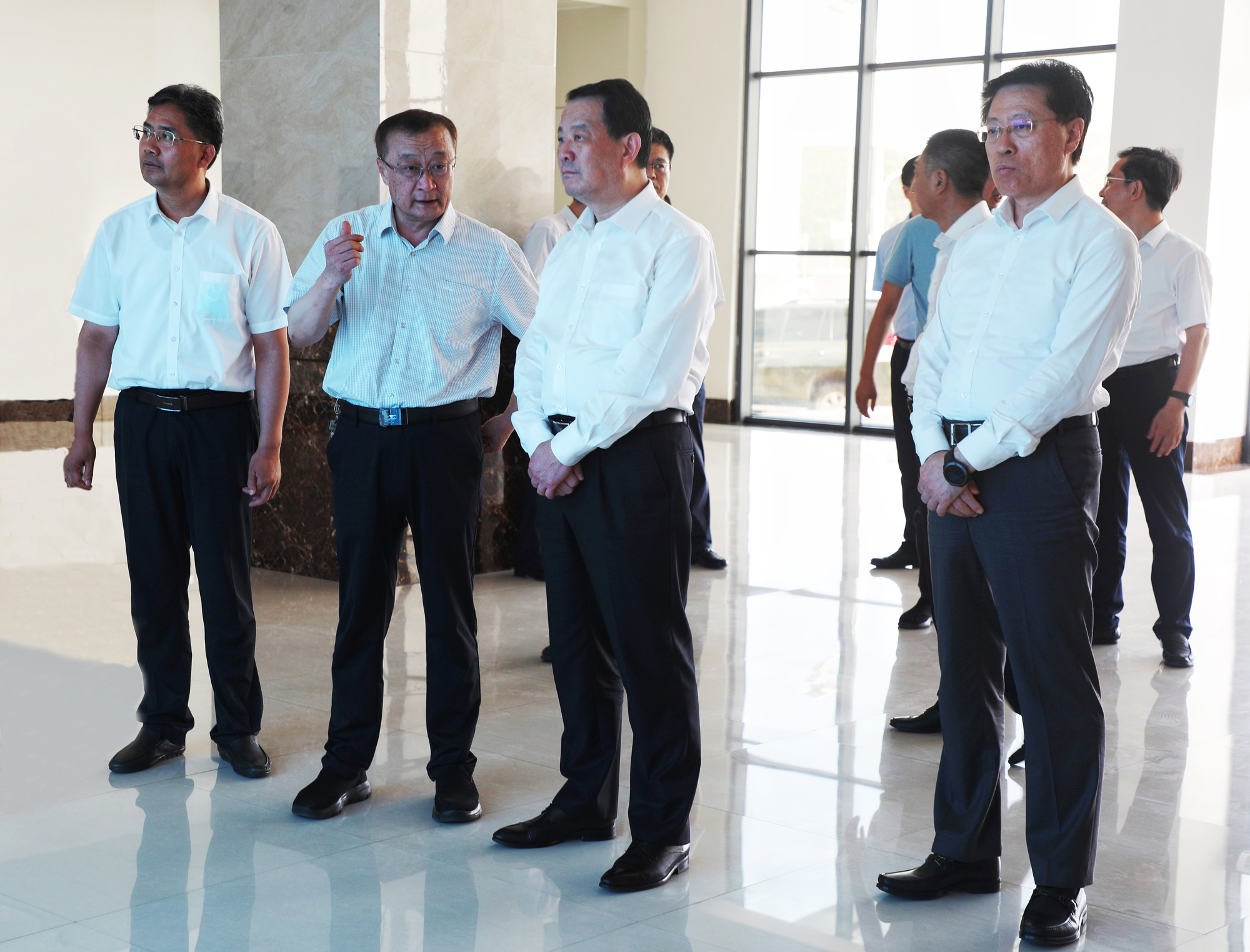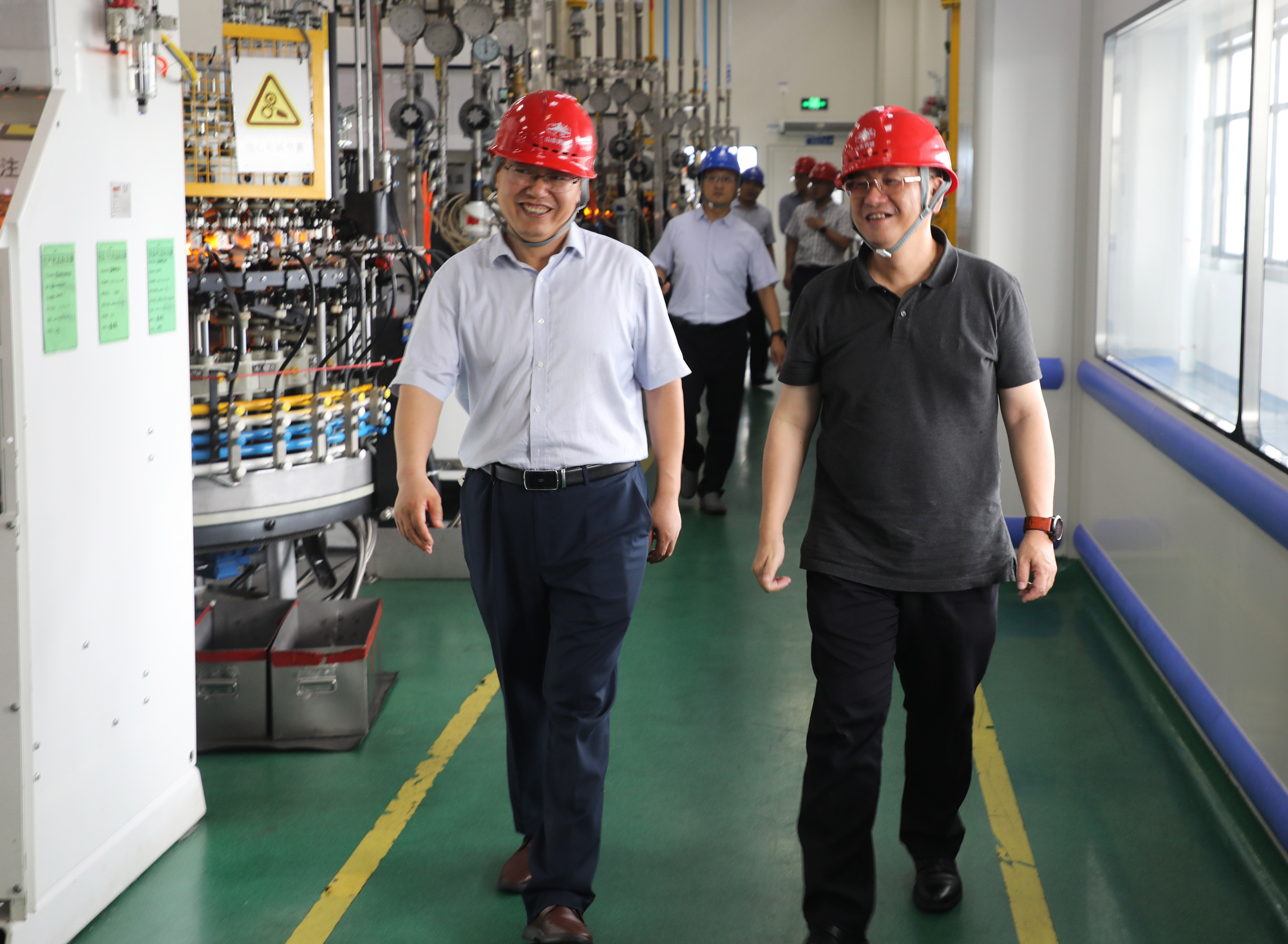 7月25日中國工程院院士、中國建材股份執行董事、總裁,凱盛科技集團有限公司董事長彭壽(右二)一行到我公司開展調研工作,淄博市委書記江敦濤(右一)、沂源縣委書記王義樸(左一)等市、縣領導陪同調研