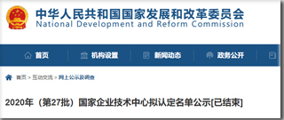 國(guó)家發(fā)改委關(guān)于印發(fā)2020年新認(rèn)定和全部國(guó)家級(jí)企業(yè)技術(shù)中心名單(第27批)的通知